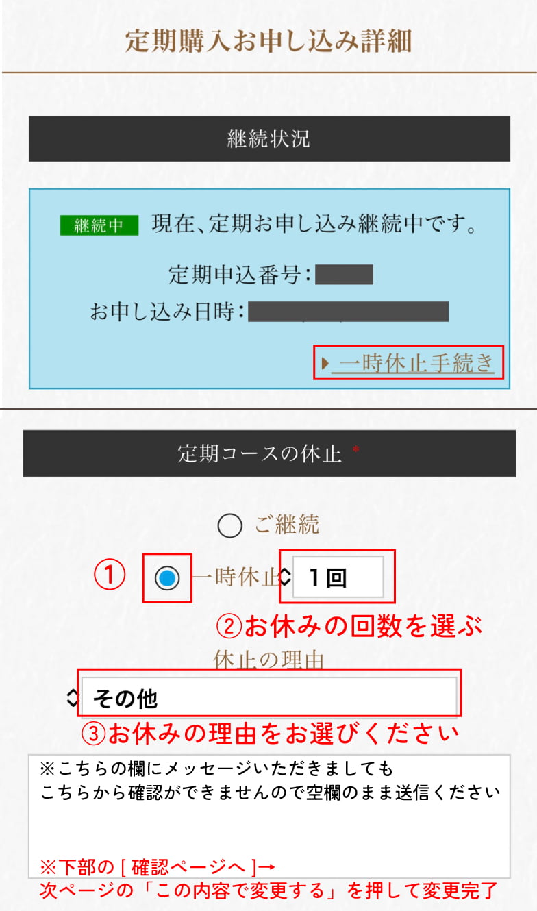 ③ 継続状況をご確認いただき、[▶一時休止手続き]へ