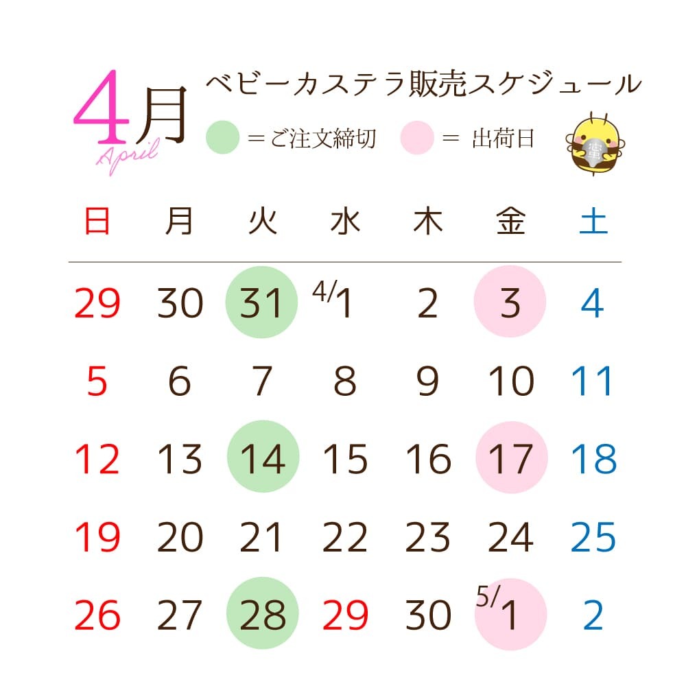 ベビーカステラ:お届けより3日以内(冷凍可)