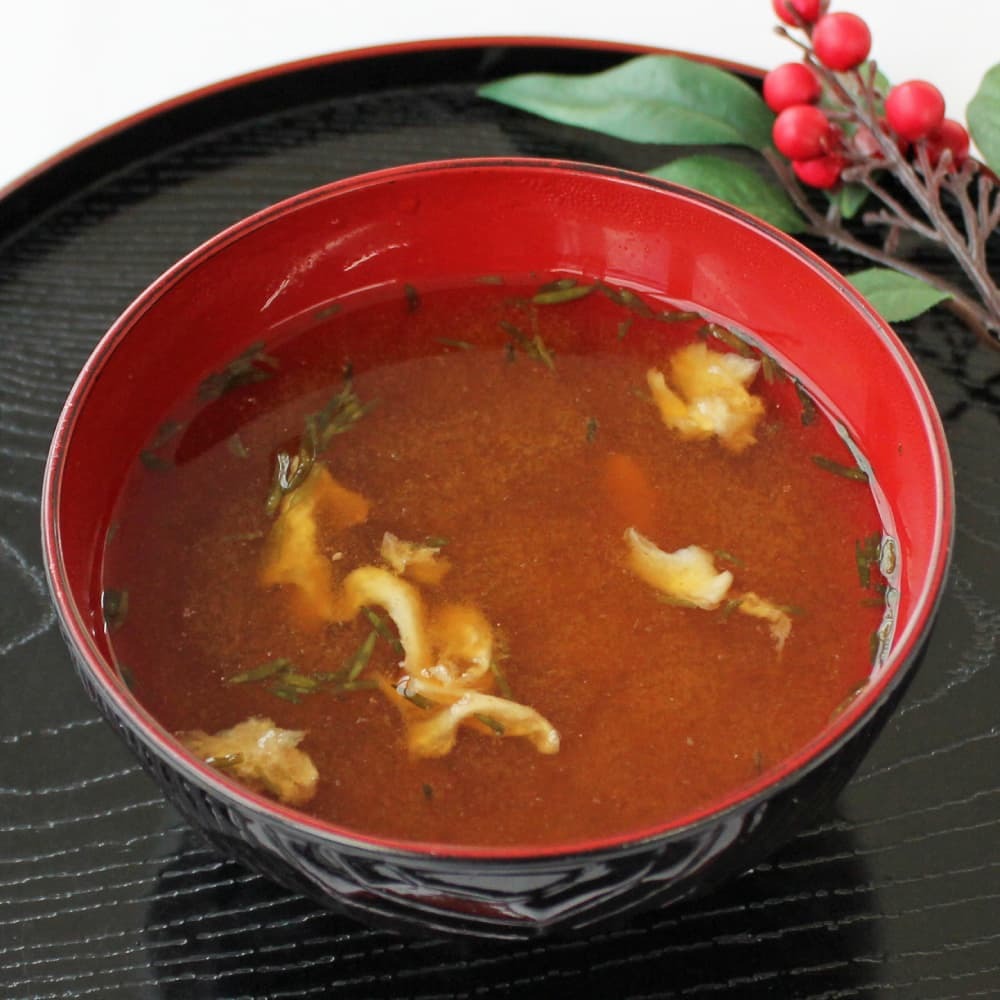 加賀麩に国産あおさをたっぷり、赤だし味噌に魚醤「いしる」を加えた