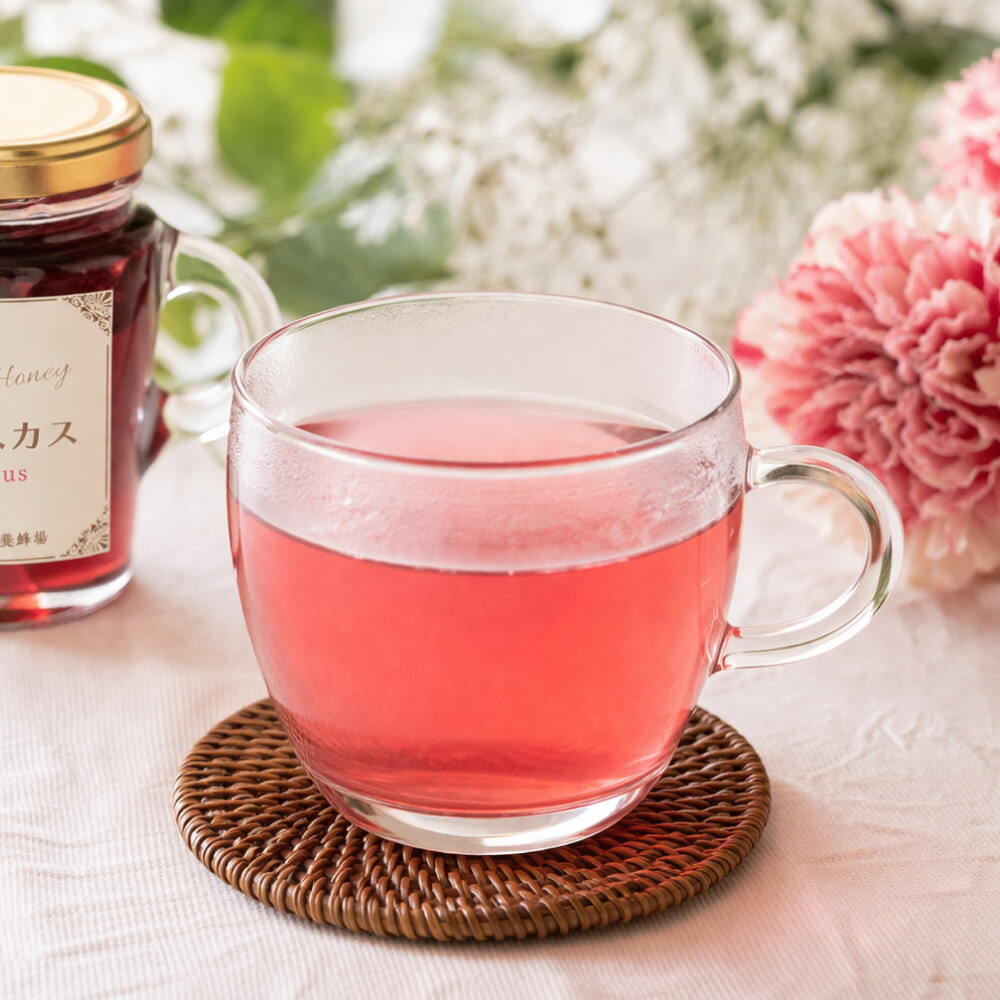 太陽をたっぷり浴びて育ったハイビスカスの花びらを、丁寧にはちみつに漬け込みました。