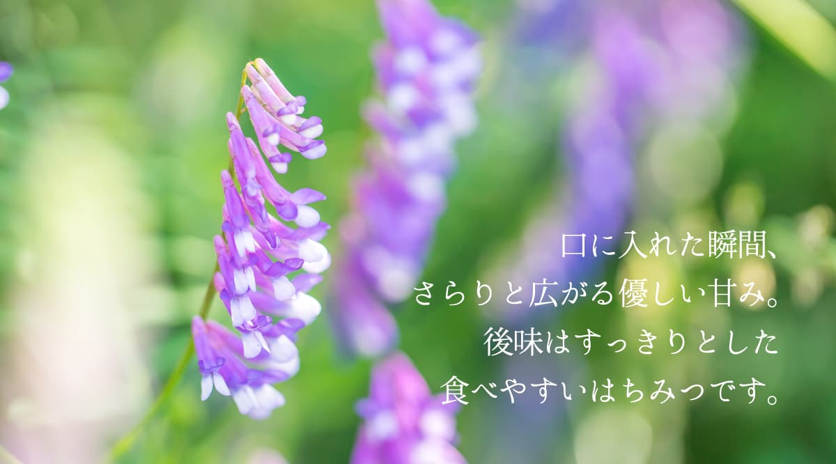 口に入れた瞬間、さらりと広がるやさしい甘さ。クセが無くあっさりとした後味でどんなものにも合わせていただけます。れんげ畑の代替蜜源として大注目のはちみつです。