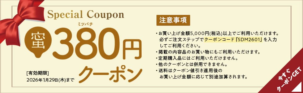 ※商品のお届けは1/29(木)まで ※おひと家族様1個・期間中1回限り ※プレゼントは限りがありますので、無くなり次第変更になる場合があります。 ※割引券やクーポン、ポイント等をご利用後の、送料を除いた金額が対象。 ※通信販売のみの特典です。直営店・催事・楽天店・Yahoo!店は対象外。 ※サブスク(定期購入)お届け中の商品を除いたお買い上げが対象(新規入会を除く)。 ※ご注文者様名・ご住所と送付先名・住所が同一の場合に限ります。 ※期間限定価格商品・期間限定販売商品以外は、キャンペーン終了後でもご注文いただけます。